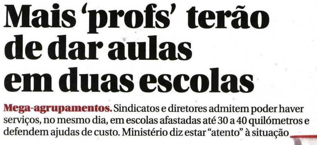 Reportagem no DN de Pedro Sousa Tavares que aborda a questão do pagamento das despesas de deslocação aos docentes que terão de fazer deslocações dentro das novas agregações de escolas.