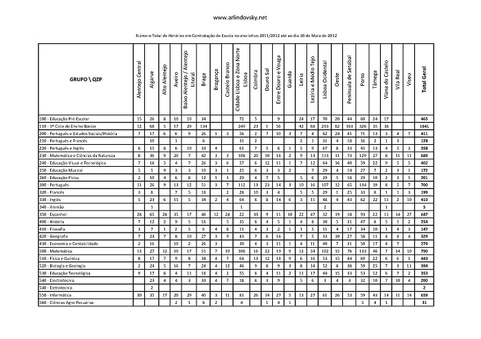 Assim, ao total de 16886 colocações é possível que tenham ficado sem candidato 1013 horários o que dará um saldo de 15.873 colocações em 2011/2012 por oferta de escola.