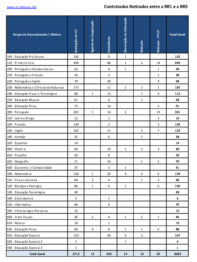 Entre a RR1 e a RR5 já foram retirados das listas de ordenação 3231 docentes.