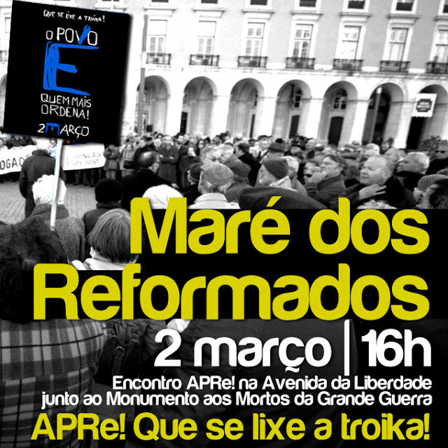 Maré dos Reformados: 16:00 na APRe! (Associação de Aposentados, Reformados e Pensionistas – Avenida da Liberdade, junto ao monumento aos mortos da Grande Guerra)