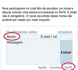 Para quem ainda não sabe como participar no chat deixo esta imagem com as instruções que de vez em quando coloco por baixo do chat.