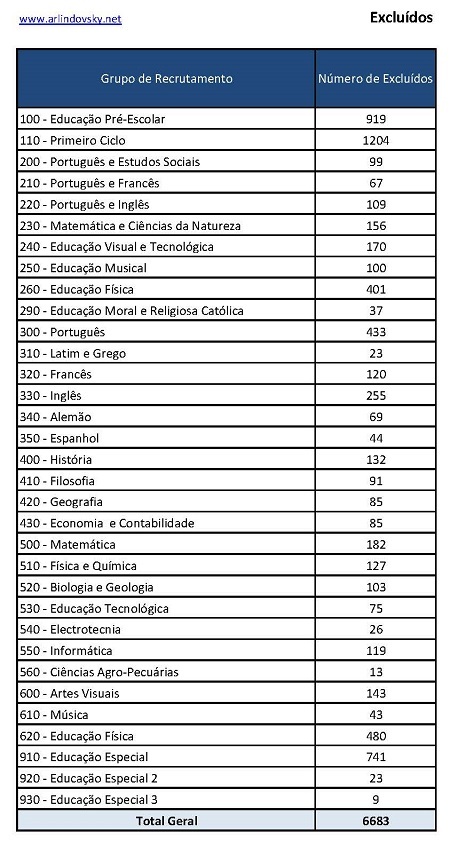 Com o número de candidaturas excluídas das listas provisórias de 3 de Junho ficam assim concluídos todos os dados gerais destas listas provisórias.