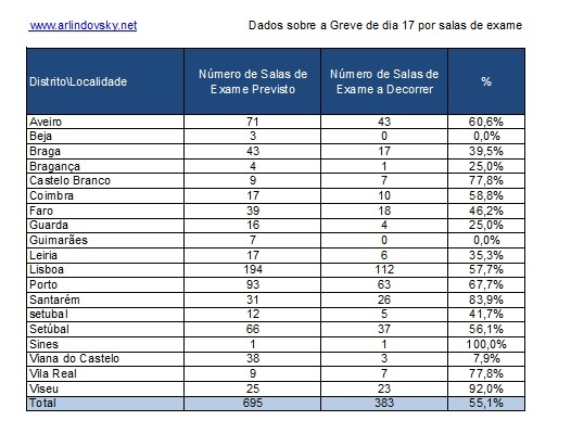 Amanhã colocarei formulários para aferir o número de professores em greve e de escolas que não realizaram os exames ou parte deles. Fiquem atentos logo pelas 8:30 da manhã e colaborem nos dados que serão visíveis à medida que se vão preenchendo.
