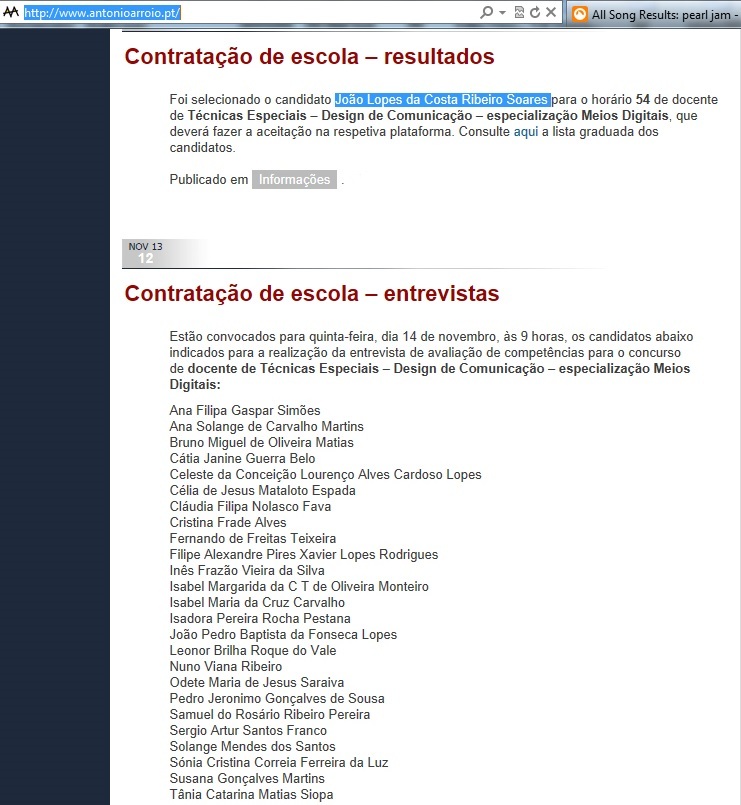 A Escola Artística António Arroio, selecionou um candidato que nem tinha sido convocado para a entrevista e nem é licenciado quando na oferta de escola se refere que se dá prioridade a técnicos profissionalizados. Parece que o candidato selecionado está pela segunda vez a dar aulas na escola e que não tem qualquer outra experiência como docente.
