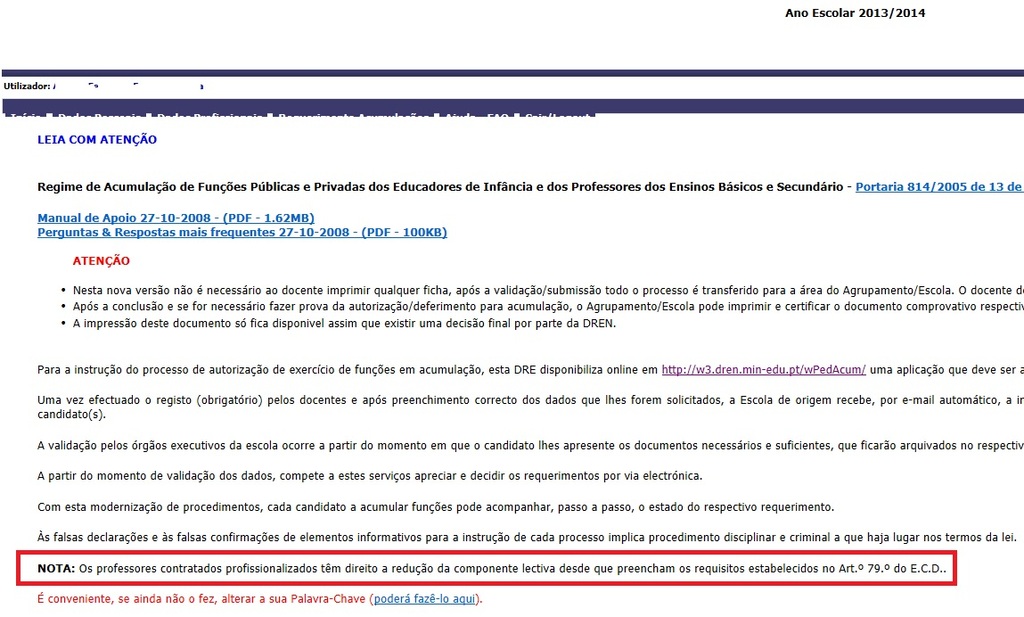 Já foi bastante discutido este assunto em posts antigos no entanto não posso deixar de divulgar a imagem seguinte retirada da aplicação para acumulação de funções em que se encontra uma nota esclarecedora.