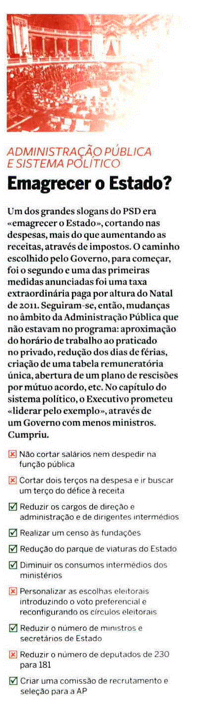 A revista Visão apresenta um balanço dos 3 anos de governação tendo em conta o programa eleitoral apesentado aos eleitores.