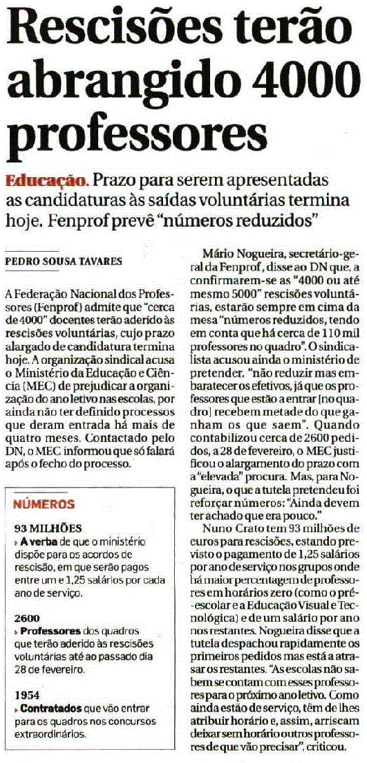 Como termina hoje o prazo para o pedido de rescisão é muito provável que ainda durante esta semana os docentes com componente letiva sejam comunicados da decisão de forma ao docente tomar a decisão final pelo prazo de oito dia úteis.