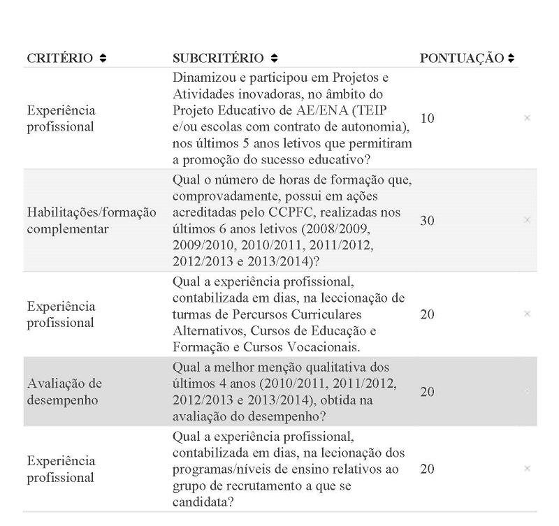 Quero ver como vai ser a segunda-feira com a apresentação dos candidatos nas escolas. As escolas vão verificar as resposta dos docentes aos subcritérios?