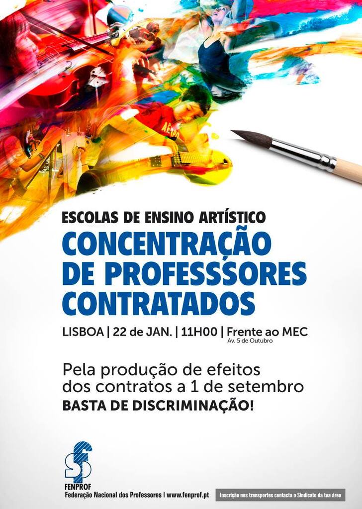 Os professores contratados das escolas públicas de ensino artístico vão concentrar-se em frente ao MEC na próxima 5a-feira pelas 11h, para procurar chamar a atenção sobre o problema que o MEC originou e não tem intenção de resolver, nomeadamente, a produção de efeitos dos contratos a 1 de Setembro de 2014.