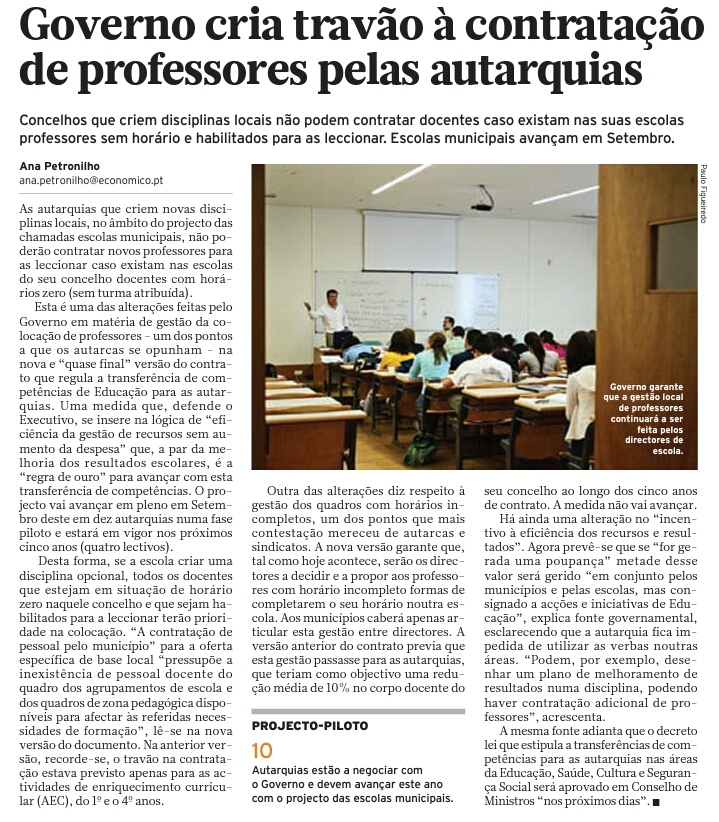 …que a competência da contratação/gestão do pessoal docente não passará para as autarquias.