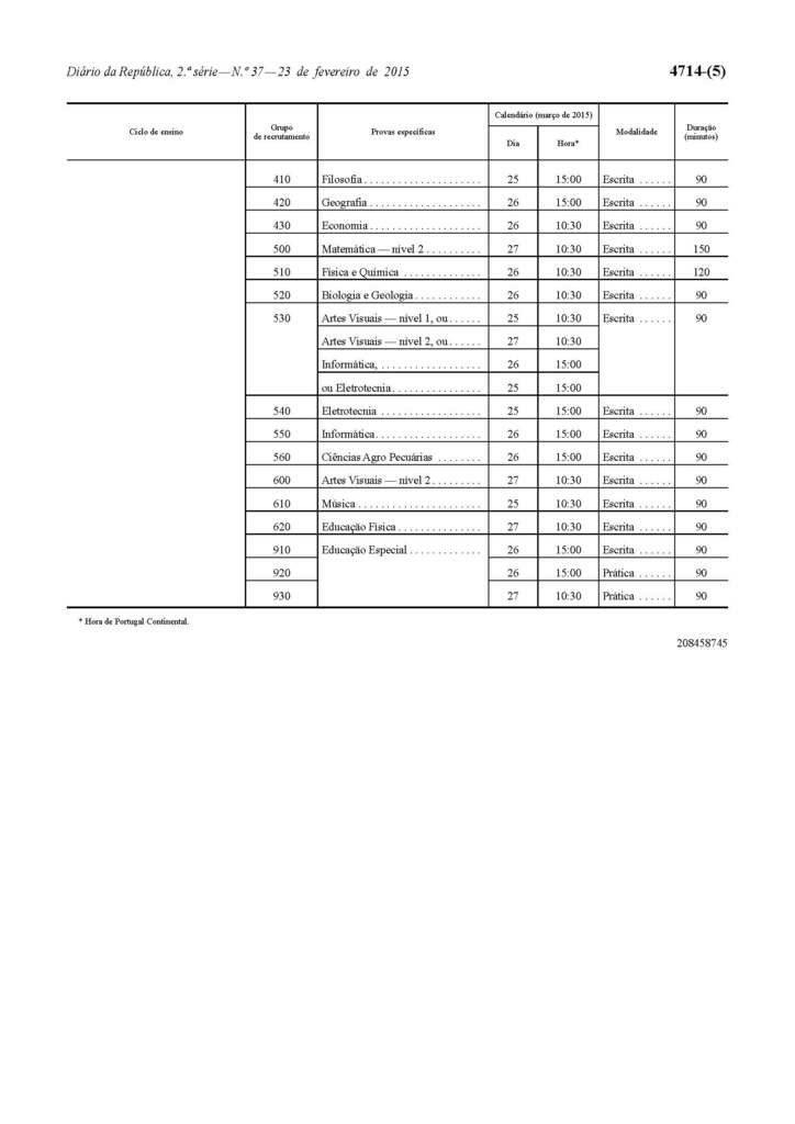 básico, do ensino secundário e da educação especial