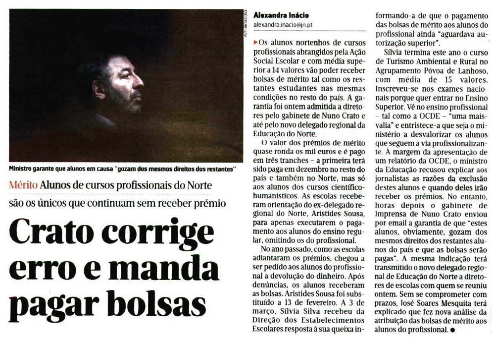 O artigo foi este, com o título “O MEC Irá Anunciar Hoje a Eliminação do Concurso de Professores”