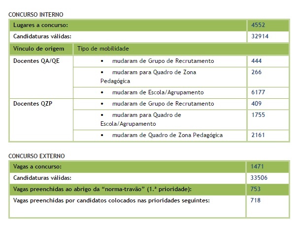 Lembro que sempre referi que o número de vagas positivas no concurso interno iria permitir uma enorme mobilidade de docentes e cerca de 30% dos docentes do quadro conseguiram uma colocação.