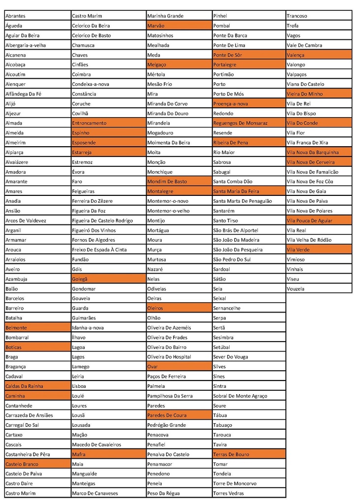 A laranja os Concelhos fechados até às 23:00.