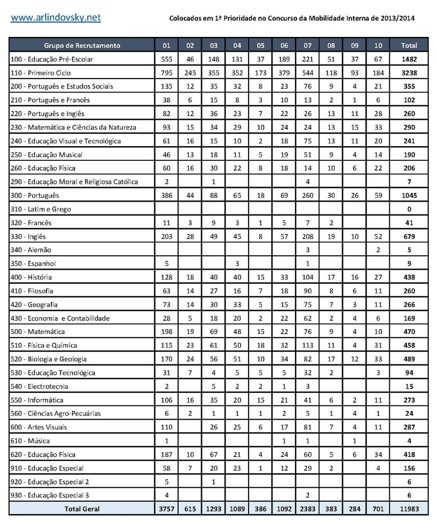 Como vincularam entretanto cerca de 3.500 docentes depois deste concurso e existiram imensas mudanças de grupo no concurso interno de 2015 não é possível olhar para estes dois quadros pensando que os mesmos números vão existir este ano, mas ficam pelo menos com os números de 2013 para se relembrarem.