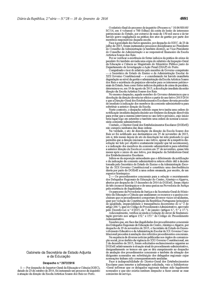 José Alberto Duarte terá instruído de forma irregular processos de financiamento para o ensino artístico, atuado de forma errada na dissolução da direção de escola no Porto e ainda beneficiado candidatos em concurso público.