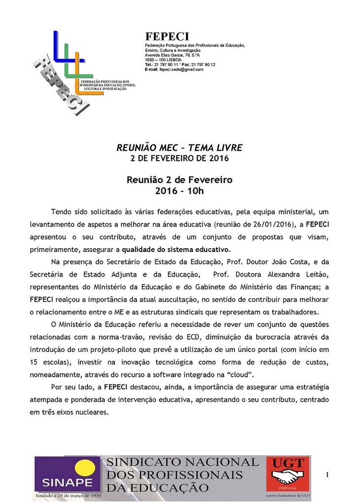 Na reunião entre a FNE e o ME, realizada no passado dia 5, mais uma vez referimos a falta do ME e exigimos que a referida Portaria fosse uma das prioridades legislativas.