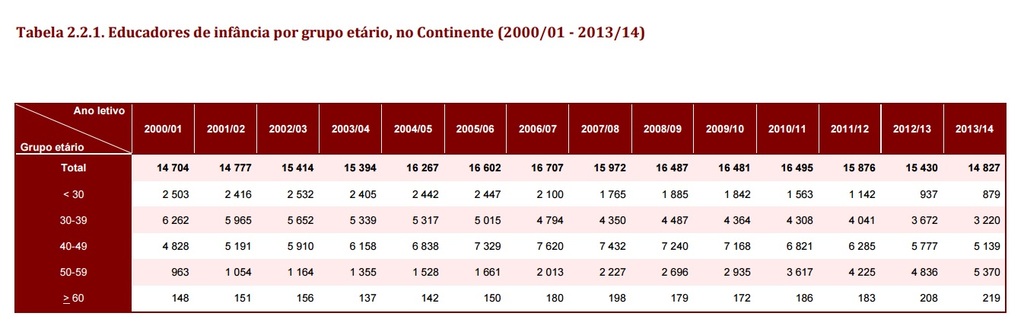 Olhar e analisar estes quadros serve para perceber que dentro de uma dezena de anos quase metade dos docentes em funções nas escolas estarão na aposentação ou próximo dela e que quando existir essa renovação os novos serão quase tão “velhos” como os que saíram ou vão sair.