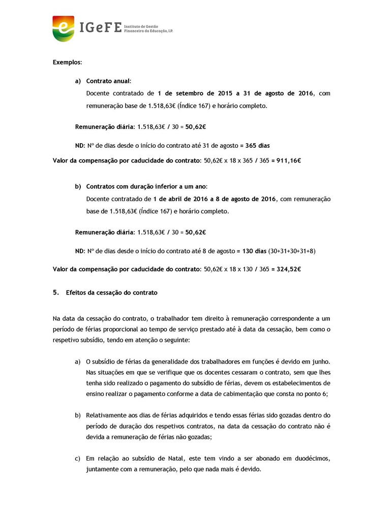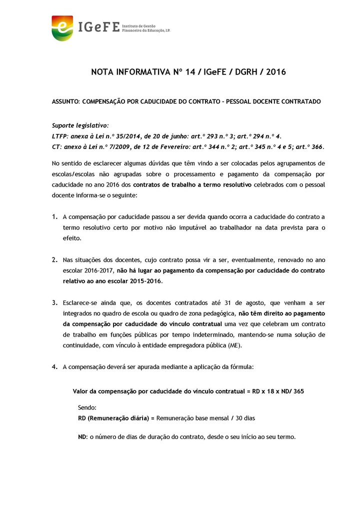 Foi publicado hoje a Nota Informativa nº 14 / IGeFE / DGRH / 2016 que orienta as escolas para o pagamento da caducidade de contrato.