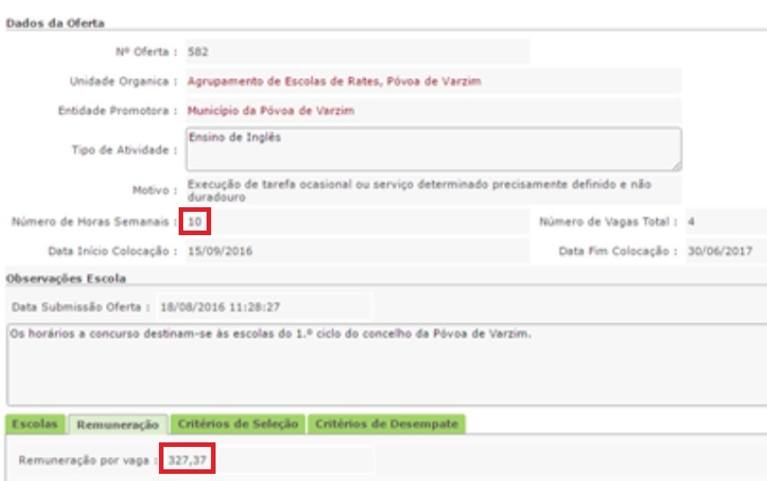 Um agrupamento de escolas paga 458,32€ por um horário de 10 horas e uma autarquia 327,37€