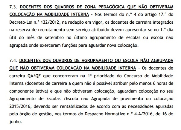 Das listas de Não colocados à Mobilidade Interna ficaram ainda por colocar 1632 docentes dos quadros que concorreram em 1ª prioridade, estes docentes ficarão a aguardar colocação nas listas da reserva de recrutamento na última escola de colocação.