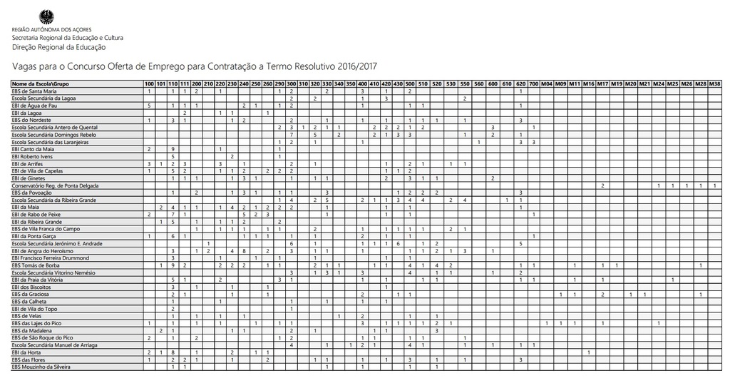 Clicar na imagem para ver os 281 docentes colocados nos Açores para 2016/2017 por Afetação.