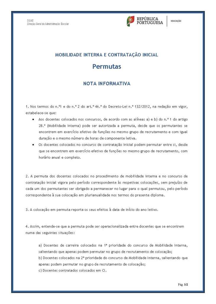 Foi publicada hoje a Nota Informativa sobre as Permutas.