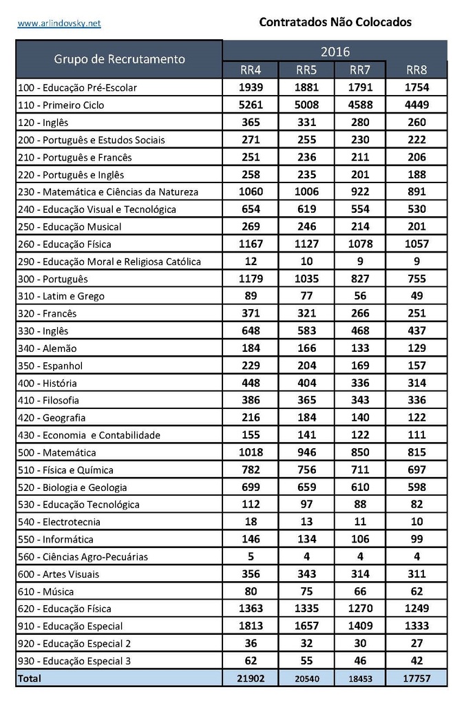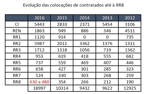 São 17.757 as candidaturas à contratação que após a Reserva de Recrutamento 8 estão por colocar de acordo com o quadro seguinte por grupo de recrutamento.