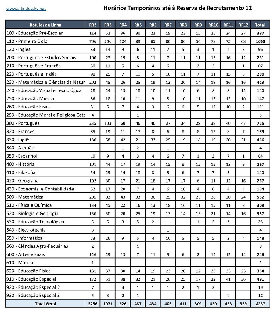 Fica neste artigo o número de colocações anuais e temporárias feitas pela Contratação Inicial/Renovações e Reservas de Recrutamento, até à RR12.