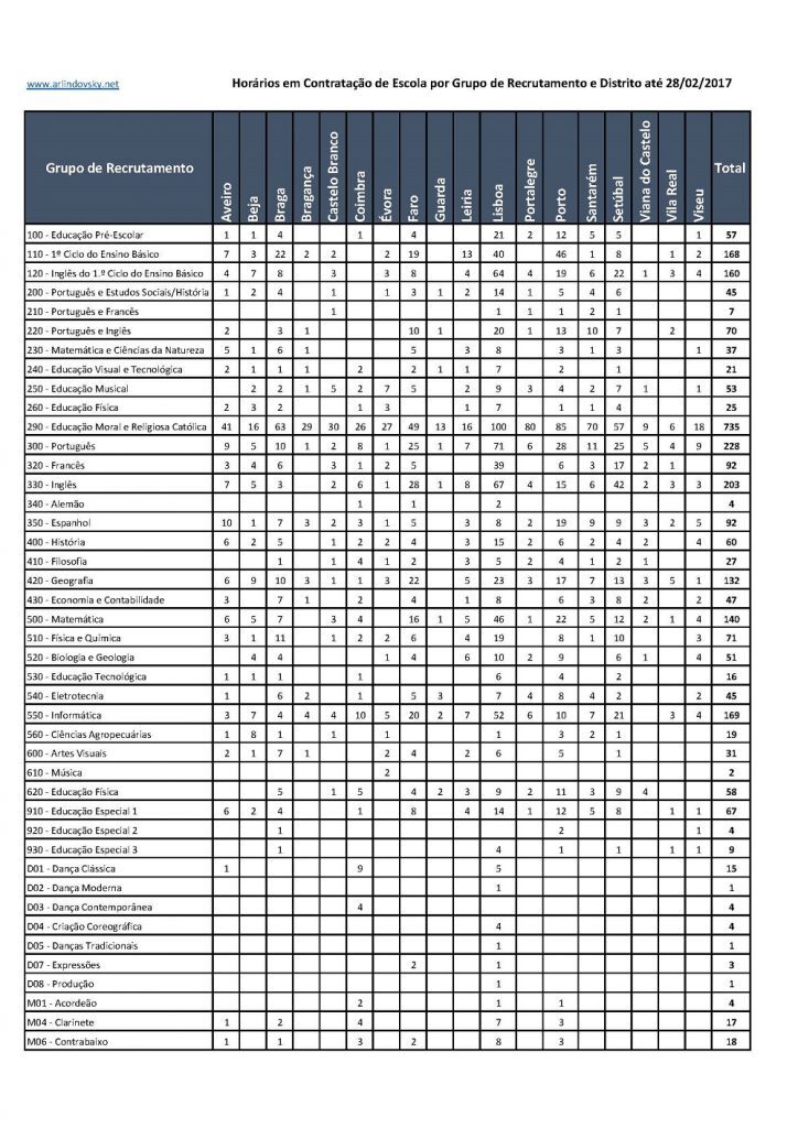 Durante o mês de Março farei a análise deste horários por número de horas e duração do contrato para apoio aos concursos para 2017/2018.