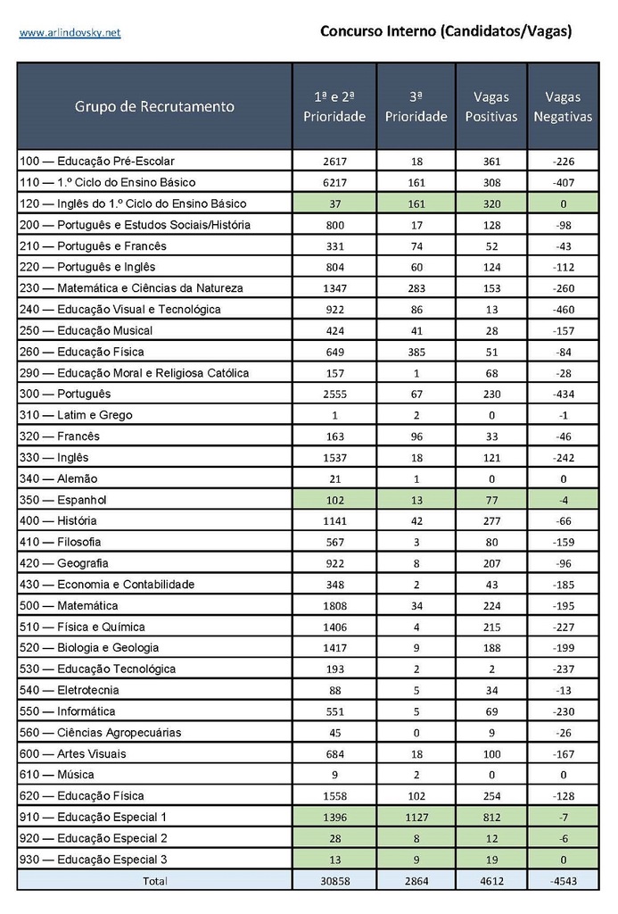 Tento mostrar aqui em que grupos de recrutamento será mais fácil haver mudança de grupo de provimento. Assinalei a verde os grupos de recrutamento que considero mais prováveis que pelo menos metade dos docentes em concurso consigam essa mudança.