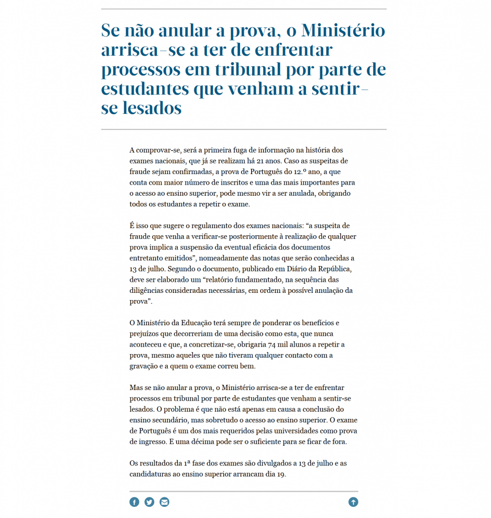 A SPM lamenta verificar que, nos critérios de correção publicados pelo IAVE, no item 14 seja atribuída 75% da cotação a uma resposta integralmente errada.