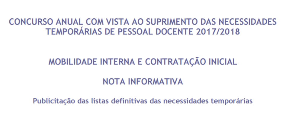 Acabaram de ser publicadas as listas de Ordenação, Colocação, Não Colocação e de Exclusões da Mobilidade Interna e da Contratação Inicial.