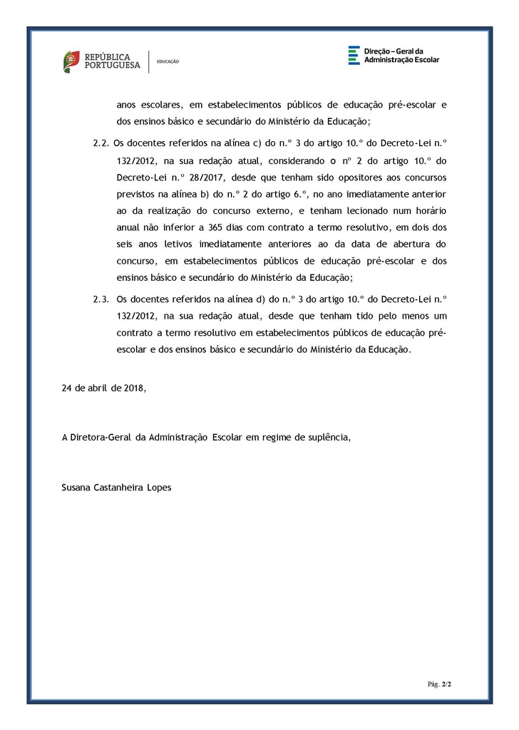 2.São opositores ao concurso externo extraordinário, nos termos conjugados do n.º 3 do artigo 10.º do Decreto-Lei n.º 132/2012, na sua redação atual, nº 2 do artigo 10.º do Decreto-Lei n.º 28/2017, e do artigo 39.º da Lei n.º 114/2017 (cfr. o Capítulo II da Parte II do Aviso):