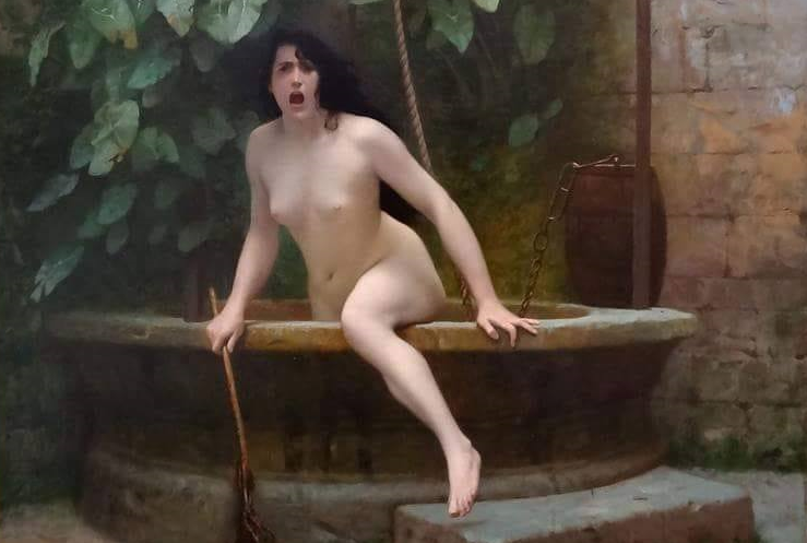 Reza uma lenda do Séc. XIX que um dia a Verdade e a Mentira encontraram-se. Diz a Mentira à Verdade: “Está um dia tão bonito”. E estava de facto um dia muito bonito. Passam algum tempo juntas até que chegam junto de um poço. ” A água está tão agradável, porque não tomamos um banho as duas?” sugere a Mentira. A Verdade, embora reticente, lá toca na água e a água estava realmente agradável. Despem-se então e banham-se. De repente a Mentira sai da água, veste as roupas da Verdade e foge. A Verdade salta do poço e corre todos os lugares para encontrar a Mentira e recuperar as suas vestes. O Mundo, vendo-se confrontado com a nudez da Verdade, revira os olhos, entre o desprezo e a raiva. A Verdade volta então ao poço onde desaparece para sempre, escondendo a sua vergonha.