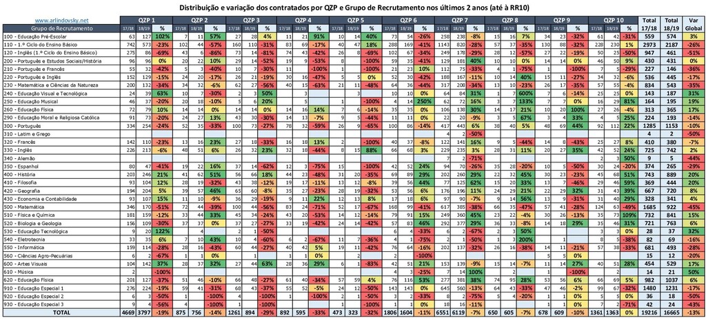 Clicando na tabela acima poderão aceder a informação pormenorizada das colocações ao longo dos últimos 2 anos, por grupo de recrutamento, QZP e perceber ainda a variação entre eles.