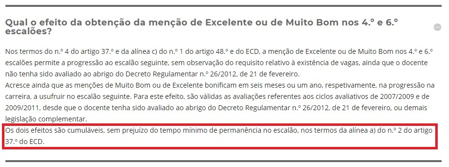 Assim, um docente com Muito Bom ou Excelente no 4.º ou 6.º escalão para além de ultrapassar as barreiras das quotas pode bonificar no escalão seguinte meio ano ou um ano conforme a sua avaliação.