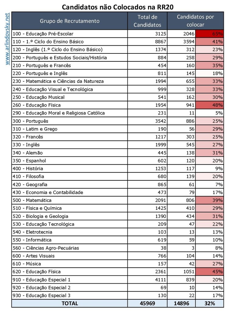 Das 45949 candidaturas à contratação, 14896 encontram-se por colocar, o que corresponde a 32% do total.