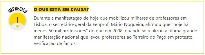 É exigência de que nunca abdicaremos. Nunca abdicaremos com efeitos no posicionamento de carreira, com efeitos na possiblidade de dispensarem da obtenção de vaga para o quinto e sétimo escalões e na despenalização no acesso antecipado à antecipação. Os professores não abdicarão do tempo contabilizado na totalidade, porque esse tempo é seu, é justo, porque não admitem ser discriminados e porque é aquilo que decorre da lei”.