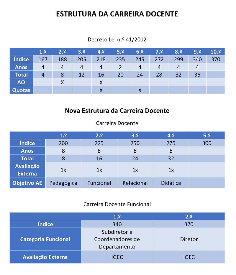 Para a apresentação desta nova estrutura faço a comparação dos vencimentos entre as duas carreiras, fazendo uma distribuição dos docentes quase equitativa entre escalões.