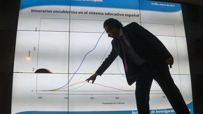 Nesta apresentação, Lacasa alertou que, ao contrário do que podemos pensar, a educação em Espanha é “uma das menos equitativas em Espanha”, uma vez que um filho de pais sem estudo tem cinco vezes mais hipóteses de falhar do que um menor cujos pais contam com este treino. Uma situação que, para este especialista no relatório pisa, se deve à falta de exigência nas escolas. “Não é algo que afeta apenas os alunos. Também reduz o nível de procura nos professores, inspetores e em todo o sistema em geral”, diz Lacasa, que refere que no caso da Andaluzia este declínio se torna mais grave do que noutras comunidades espanholas.