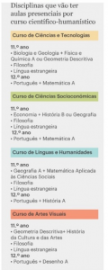 Por exemplo, um aluno do 11.º ano do curso de Ciências e Tecnologias ou de Ciências Socioeconómicas não terá aulas presenciais de Matemática A, visto que só realizam exame nacional desta disciplina no final do 12.º ano. Já os do curso de Línguas e Humanidades também não terão aulas presenciais de Português pela mesma razão.