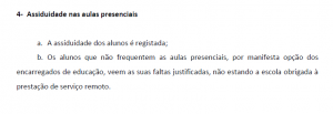 “Quando o número de alunos da turma tornar inviável o cumprimento das regras de distanciamento físico nos espaços disponíveis, as escolas podem desdobrar as turmas, recorrendo a professores com disponibilidade na sua componente letiva. Caso esta ou outra via não sejam viáveis, pode ser reduzida até 50% a carga letiva das disciplinas lecionadas em regime presencial, organizando-se momentos de trabalho autónomo nos restantes tempos;”