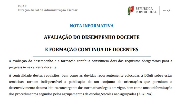 Foi publicada uma Nota Informativa sobre Avaliação do Desempenho Docente e Formação Contínua de Docentes.