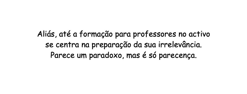 Para além da falta de atractividade da profissão, dá ideia que se esgotou o modelo de formação inicial. Um caminho mais flexível e apelativo seria a criação de licenciaturas exclusivamente para as componentes científicas. Ajudaria numa mudança futura de profissão. Só nos mestrados se estudaria a pedagogia para leccionar. Apenas depois de um estágio (internato ou profissionalização) plurianual, realizado em exercício, se acederia ao quadro e a uma carreira. Mas nada disso se discute e a especificidade científica perdeu peso na profissionalidade. Aliás, até a formação para professores no activo se centra na preparação da sua irrelevância. Parece um paradoxo, mas é só parecença.