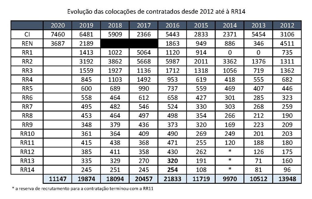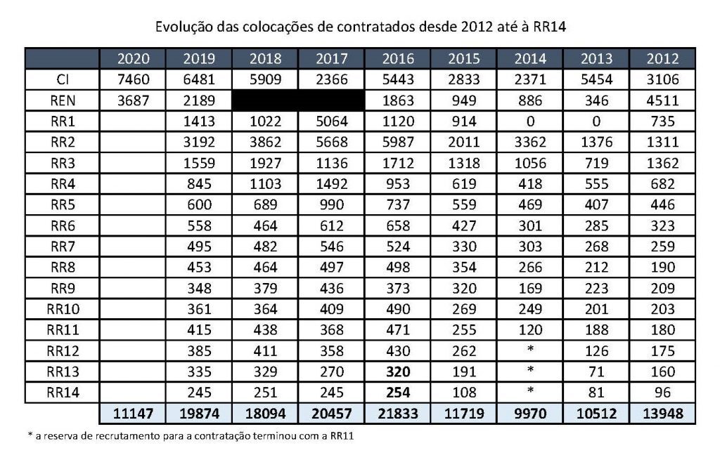 Fica a lista com o número de professores a quem saiu a fava o ano passado e na CI/REN deste ano: