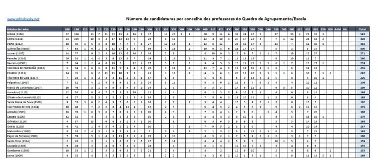 Podia fazer como título “De Que Concelhos Fogem os Professores”, mas não seria correto porque existem neste caso discrepâncias enormes entre o número de docentes de cada concelho, assim como o facto de muitos destes docentes concorrerem também para escolas do seu concelho de provimento.