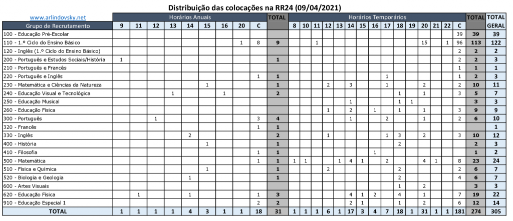 Foram colocados 305 contratados na Reserva de Recrutamento 24, distribuídos da seguinte forma: