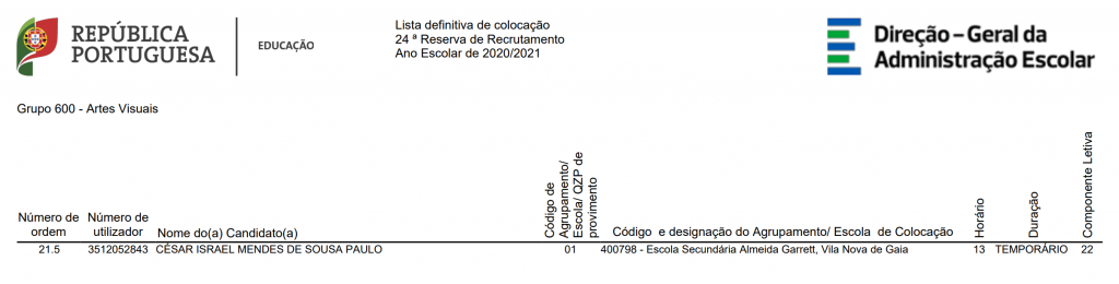 Publicitação das listas definitivas de Colocação, Não Colocação, Retirados e Listas de Colocação Administrativa – 24.ª Reserva de Recrutamento 2020/2021.