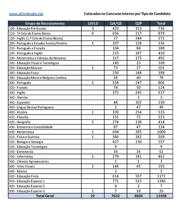 Movimentaram-se no concurso interno cerca de 12 500 docentes, em resultado das vagas abertas pela primeira vez e também pela libertação decorrente da movimentação interna.